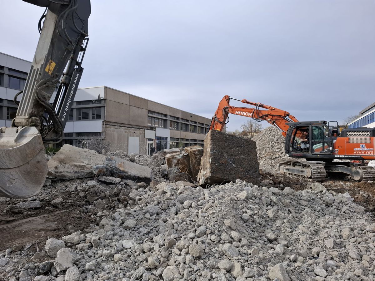 Die Abbrucharbeiten für das Projekt ,,Neubau Bürgerforum Kreuztal" sind abgeschlossen. Als nächstes steht die Errichtung einer Stützwand im Untergeschoß an, sobald passende Angebote für die Ausführung vorliegen.